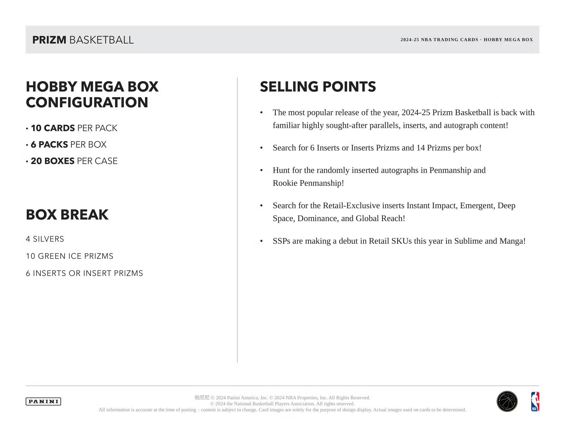 2024/25 Panini Prizm Basketball Hobby Mega Box