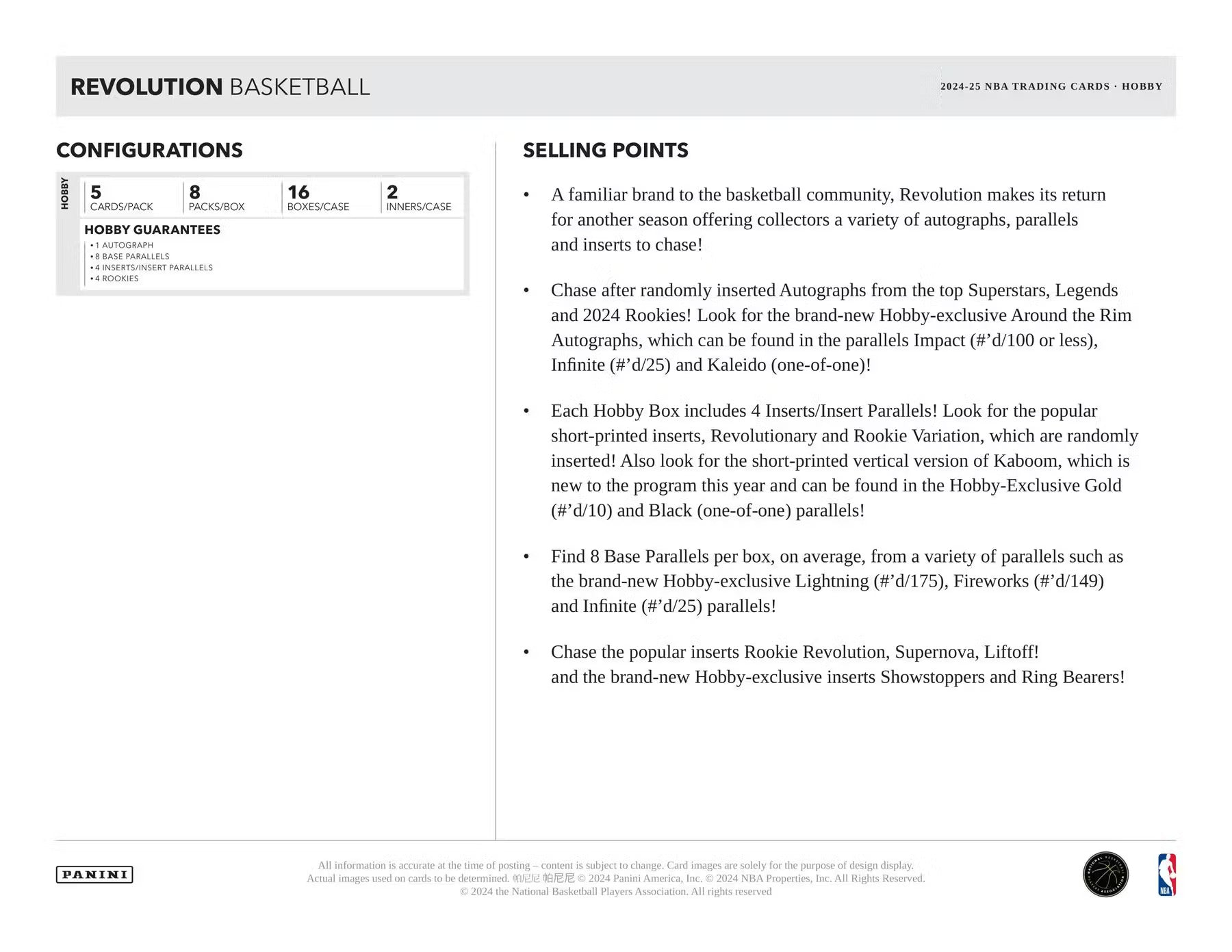 💥 Revolution Basketball revient pour la saison 2024/25 avec des parallèles exclusifs, inserts variés et autographes à collectionner !